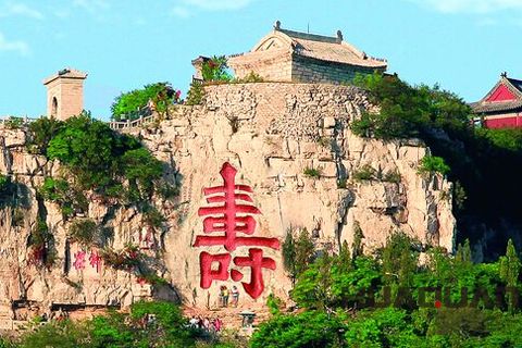 說起云門山,山雖不高(海拔421米),但平原拔笏,松蔭蓋足,有千仞之勢(shì),在山東乃至全國(guó)享有盛譽(yù)。主峰大云頂,有洞如門,高闊過丈,南北相通,遠(yuǎn)望如明鏡高懸。夏秋季節(jié),常有云霧穿門而出,故名“云門”……因山坐落在青州城南,故又稱“南山”。值得一提的是,山上有一個(gè)巨大的“壽”字,人稱為“云門獻(xiàn)壽”。據(jù)華全發(fā)電機(jī)組了解,此巨“壽”是明嘉靖年間衡王府管家周全為給衡王朱厚矯(時(shí)住青州)祝壽而請(qǐng)人鐫刻的,“壽”高7.5米,寬3.7米,字體結(jié)構(gòu)嚴(yán)謹(jǐn),端莊大方,坐南朝北,人稱“天下 壽”。這個(gè)“壽”字如此之大,以至于人們常用“人無寸高”來形容。僅“壽”中的“寸”就有2.3米高,如果一個(gè)成年人攀上去,腳蹬“寸”勾,他的頭部也到不了“寸”頂。