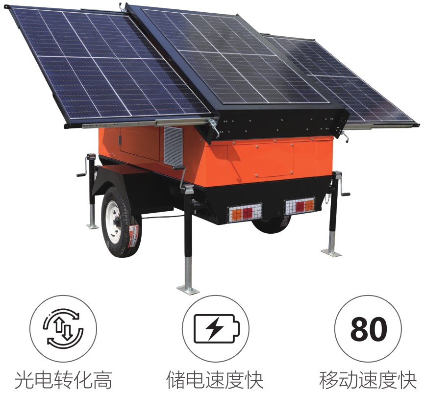光伏電站主要由太陽能電池板,控制器,高速拖車底盤、電池組和逆變器等組成。